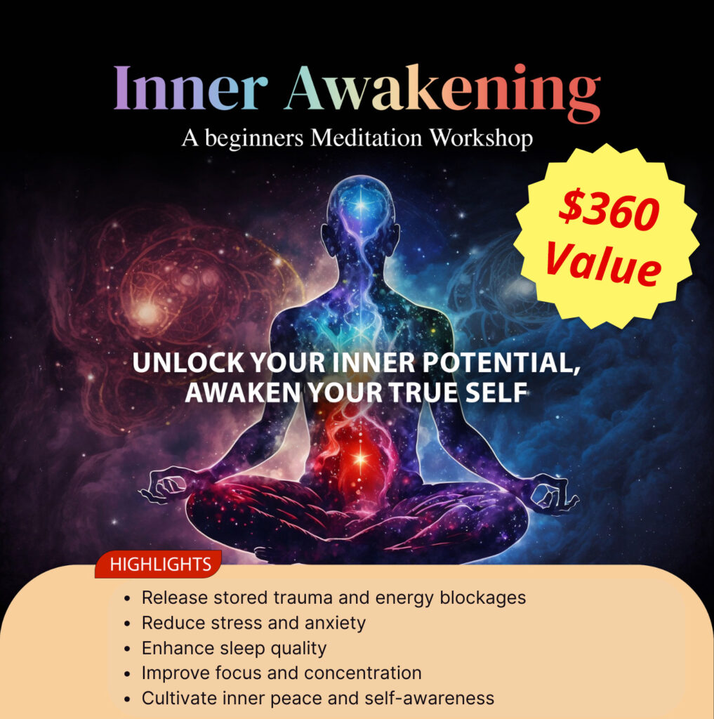 Unlike typical meditation classes, Inner Awakening uses a direct energy activation method that helps you access deeper states of awareness quickly and safely. You’ll be guided step-by-step in a supportive environment where ancient wisdom meets modern understanding of the mind and body.